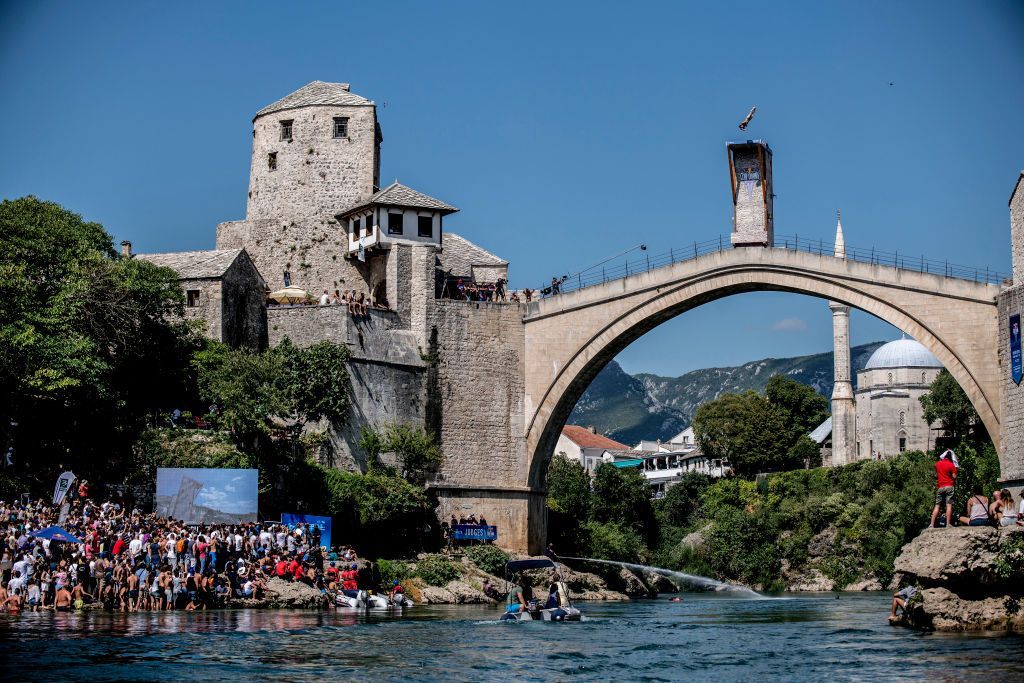 قفز غواصون، من أعلى الجسر القديم في مدينة “موستار” البوسنية، وذلك ضمن مسابقة تقليدية تقام بانتظام منذ عدة عقود.