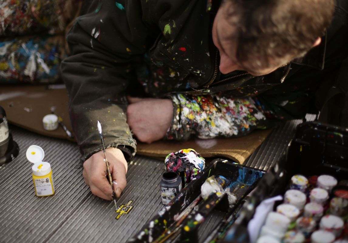 وتلاحظ على جسر المشاة والمنطقة المحيطة بها ابتكارات الرسام، وهي بحجم يزيد بقليل عن القطعة النقدية، هي لا تسترعي انتباه المشاة إلا إذا اقتربوا من الرسوم أكثر وحدقوا فيها. ومن المجسمات الصغيرة نجد رسوما واضحة لمعالم بألوان حيوية، تحمل أحيانا التوقيع والتاريخ.