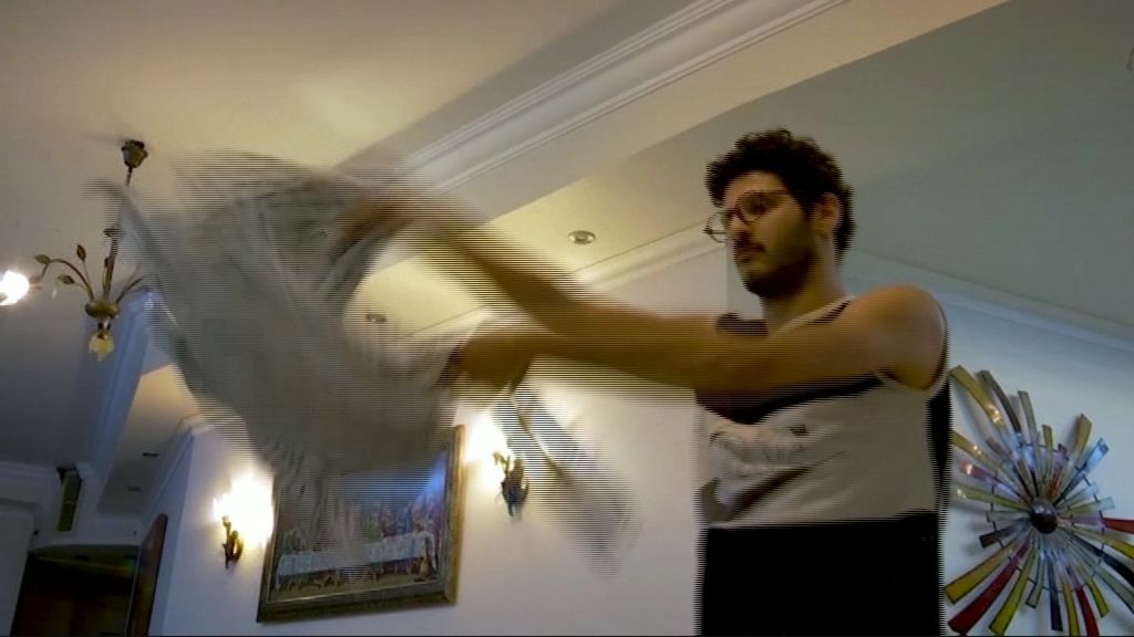 على إيقاعات الموسيقى الصاخبة في غرفة معيشته، ينفذ مصمم الرقصات ومدرب الرقص حنا طمس حركات الدبكة المعقدة فيما يتابعه عشرات الطلاب عبر الانترنت ويحاولون تقليده، من غرف المعيشة الخاصة بهم أيضاً.