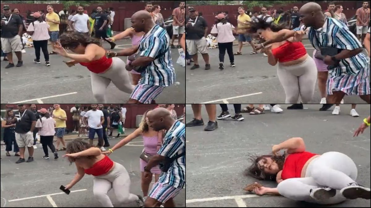 انتشر مقطع فيديو صادم على مواقع التواصل الاجتماعي يوثق لحظة لكم رجل لامرأة خلال أحداث العنف الأخيرة من كرنفال نوتينغ هيل بإنجلترا.