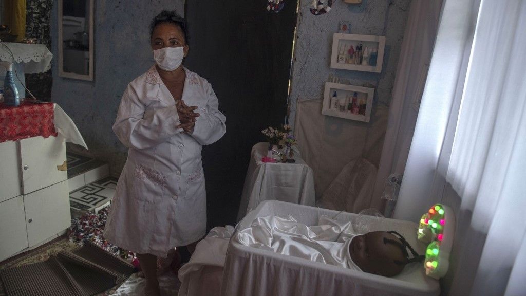 بردائها الطبيّ الأبيض، وبالسمّاعات الطبية في أذنيها، تعاين “الدكتورة سويلن” في منزلها بالقرب من ريو دي جانيرو “مريضتها”، وهي دمية سوداء تفككَ جسمها البلاستيكي. ولا تحمل سويلن دا سيلفا شهادة في الطب، لكنّ لديها الكثير من البراعة: فقد حولت هوايتها مصدر رزق بعدما فقدت وظيفتها كمدبرة منزل في نيسان/أبريل الفائت، مع بدء تفشّي فيروس كورونا المستجد.