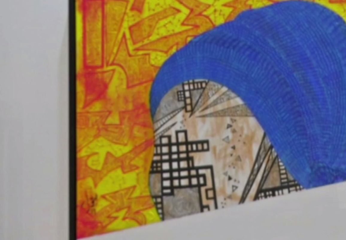 في قاعة فنية بدبي تُعرض لوحات فنية غير مُكتملة في إطار حملة لإنهاء فجوة الأجور بين الفنانين الذكور والإناث.