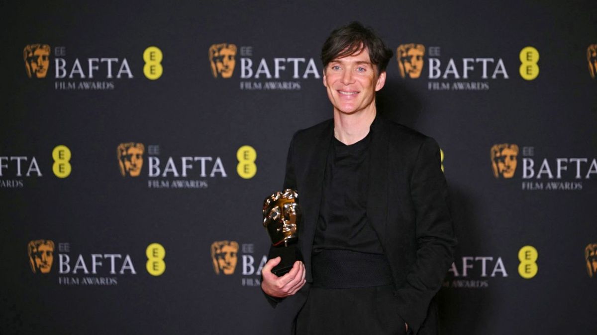 كيليان ميرفي أثناء تسلمه جائزة بافتا لفيلم أوبنهايمر (أ ف ب)