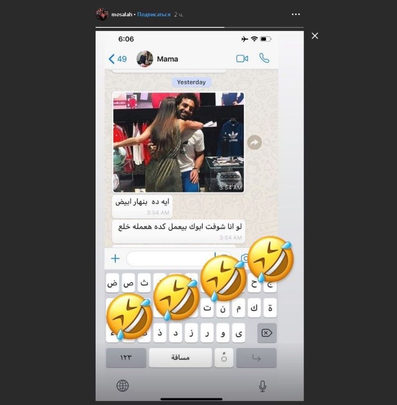 نشر النجم المصري محمد صلاح، صورة لمحادثته مع والدته عبر واتساب ، وشاركها مع معجبيه على خاصية “story” في “انستغرام”.