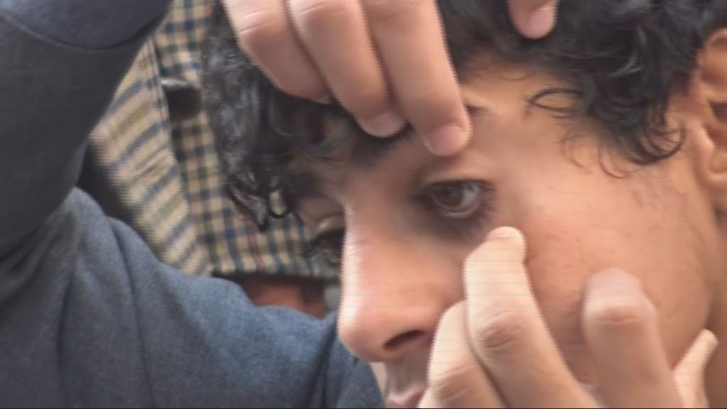 رجال وأطفال يمنيون اصطفوا خارج الجامع الكبير في العاصمة صنعاء , لوضع “الكحل” التقليدي على أعينهم .