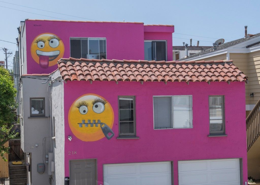 In Manhattan Beach, a woman painted her Airbnb rental with emojis because it’s “time for the emoji.”