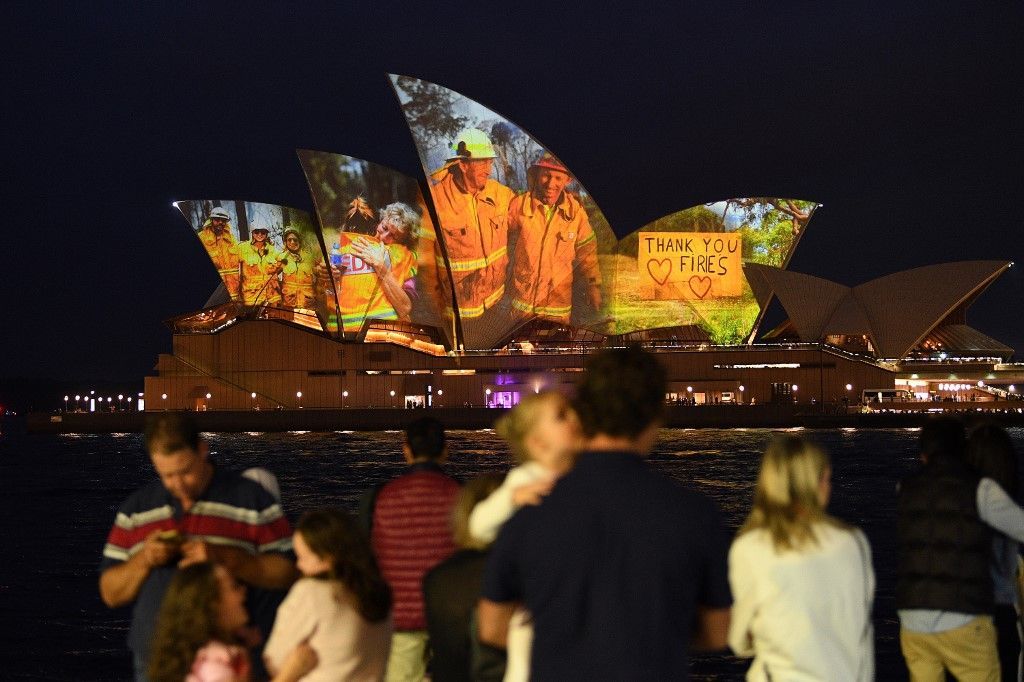 تزيّن دار الاوبرا في سيدني بصور مؤثرة لرجال الإطفاء والمتطوعين الذين ما زالوا يقاومون الحرائق المندلعة في أستراليا. وبحسب شبكة “CNN” الأمريكية، فقد أضيئت دار الأوبرا بمشاهد لهؤلاء الرجال، إلى جانب صور من حرائق الغابات، وذلك في رسالة تهدف لتقديم الدعم والتقدير لهم.