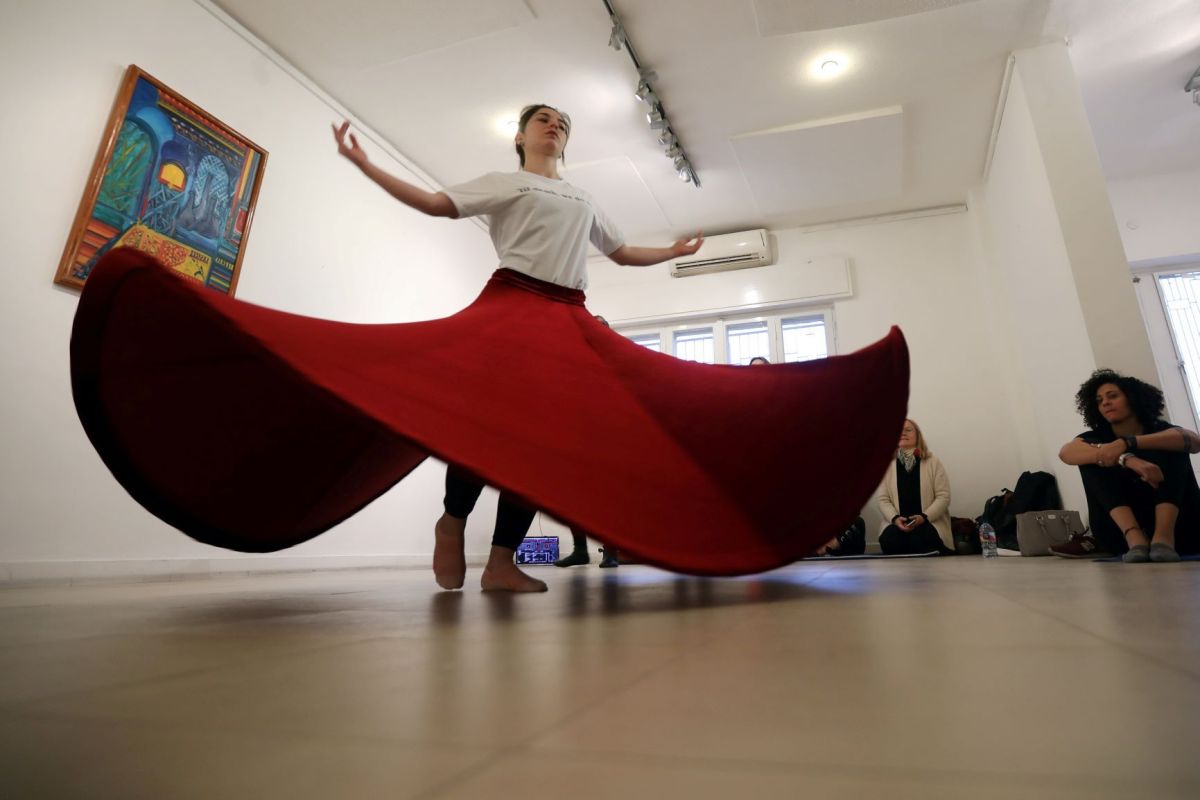 وتبدأ ورشة العمل التي تستغرق ثلاث ساعات بجلسة تأمل موجهة، يليها شرح لفوائد الدوران وتقنياته. ثم تحصل المشاركات على تنانير طويلة ويبدأن في ممارسة رقصة الدوران عملياً.