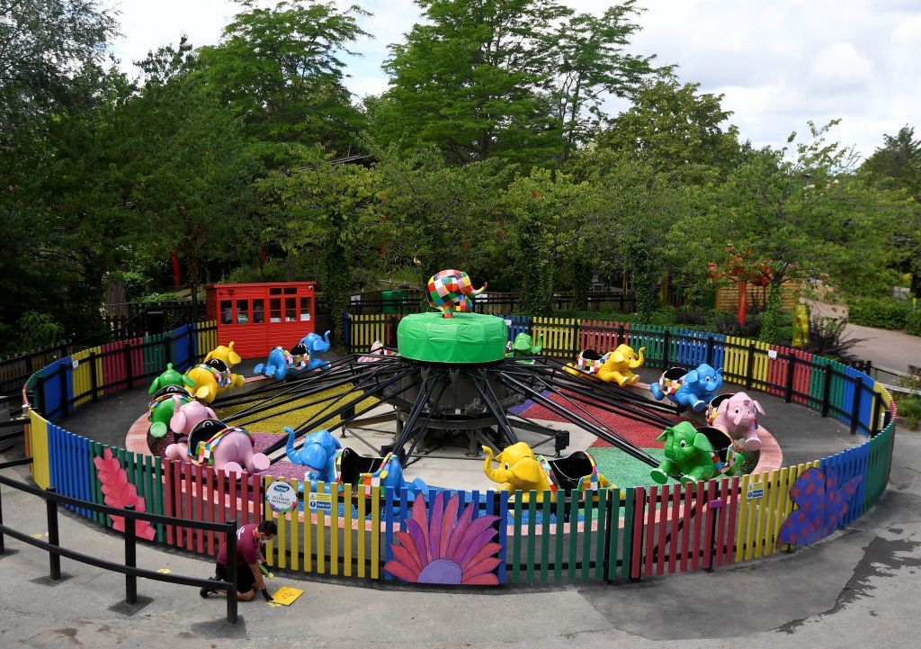 عمال مدينة الألعاب في لندن يعقمون المدينة استعدادا لاستقبال الزوار / رويترز