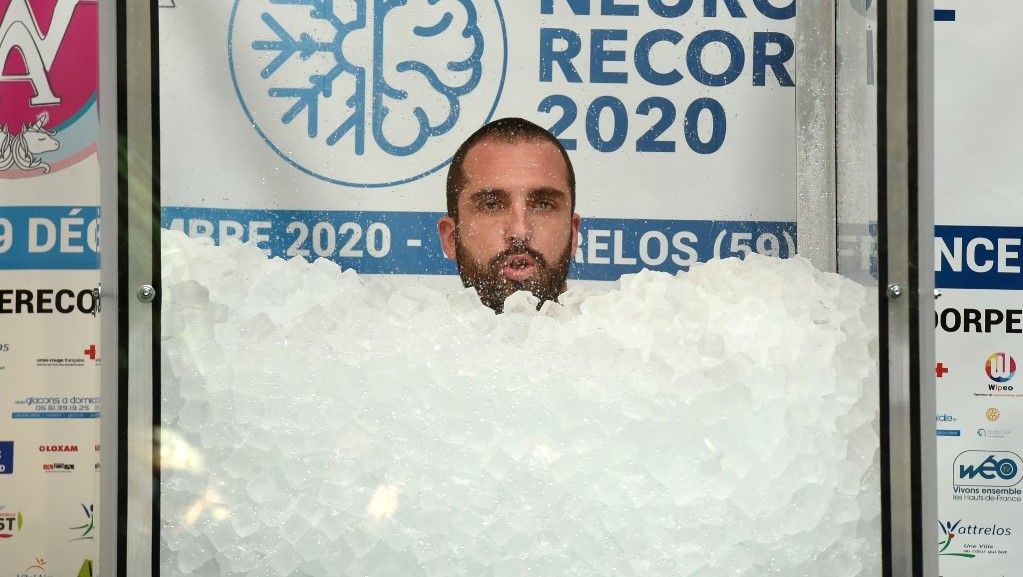 دخل الفرنسي رومان فاندردورب موسوعة “غينيس“، بعد تحطيمه الرقمي القياسي العالمي لأطول فترة تغميس للجسم في الثلج.