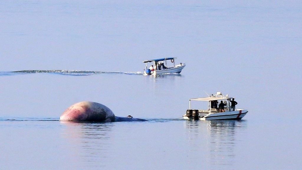 وقالت وسائل الإعلام المحلية إن طول الحوت النافق يبلغ أكثر من 10 أمتار، فيما يتجاوز وزنه 10 أطنان.