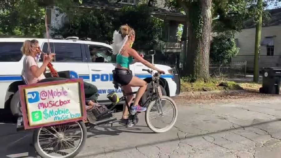 في نيو أورليانز, تحاول عازفة الكمان و صديقتها منذ حوالي خمسة أسابيع اختيار طريق كل يوم يخرجان فيه على دراجة هوائية للعزف في الشوارع في إطار سعيهن لرفع المعنويات للمتساكنين في زمن كورونا.