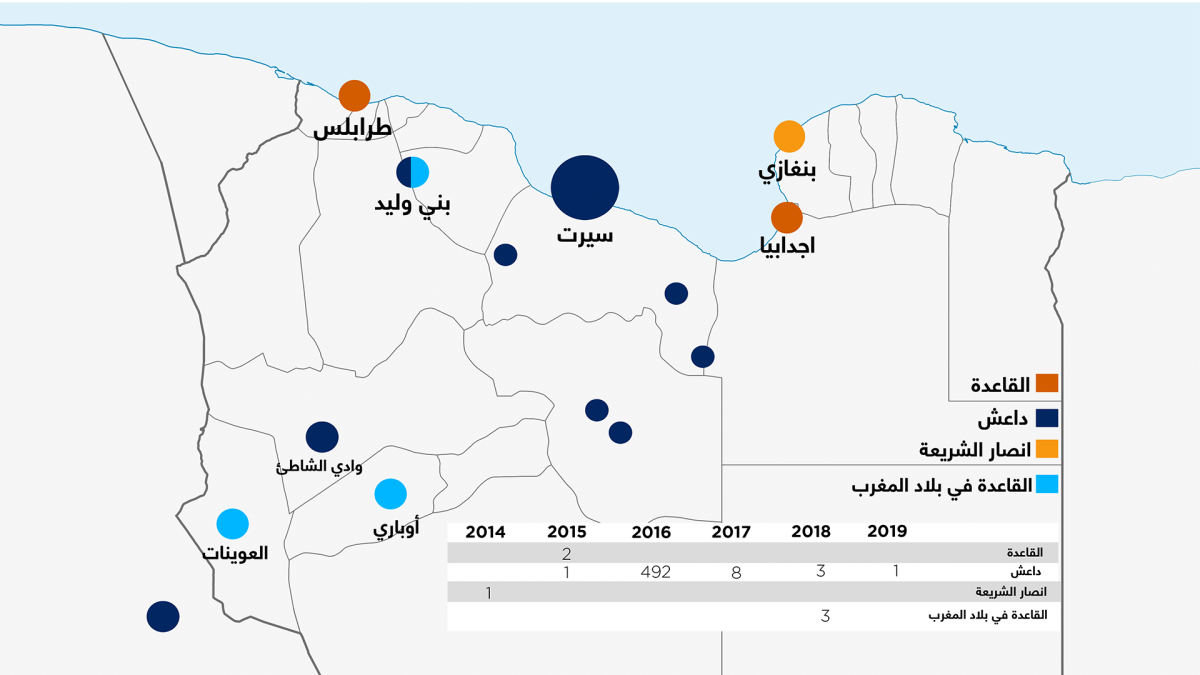 واستغل التنظيم الإرهابي الصحراء الشاسعة في الجنوب الليبي في محاولة ترسيخ وجوده، خاصة في سلسلة جبال الهاروج الصحراوية – وفق باحثين – الممتدة لأكثر من 200 كيلومتر بالقرب من مثلث «زلة- الجفرة- هون» وسط ليبيا؛ لصعوبة السيطرة الأمنية عليها، ووعورة الدروب بها.