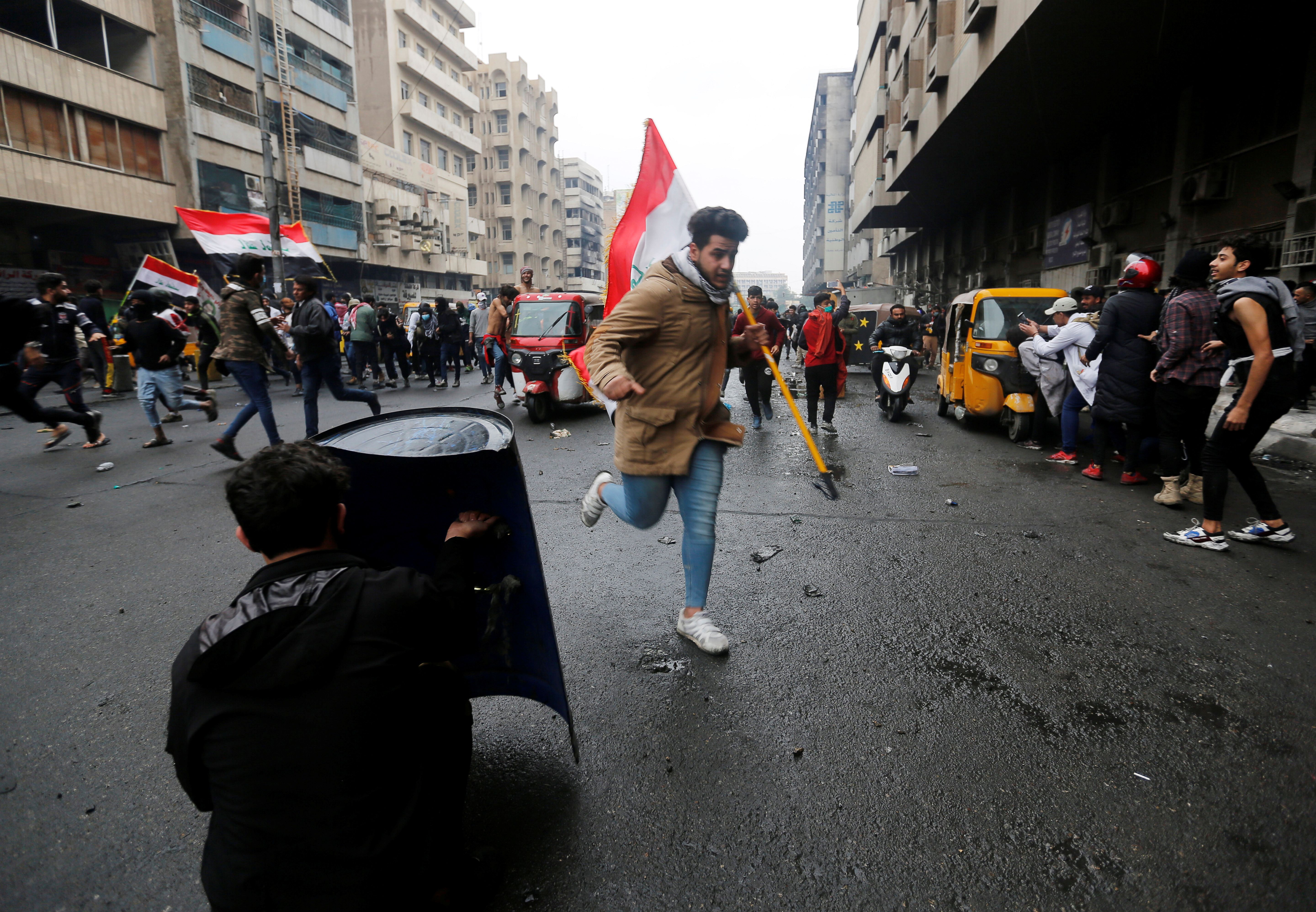 وذكرت وسائل إعلام أن قوات الأمن العراقية أطلقت الرصاص وقنابل الغاز المسيل للدموع على المتظاهرين، وتتقدم باتجاه ساحة التحرير وسط بغداد.