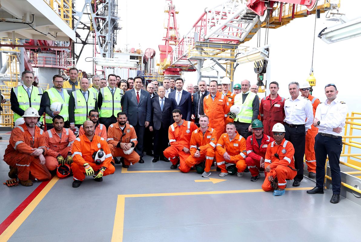 وقال رئيس الجمهورية ميشال عون خلال حفل رسمي أقيم على متن الباخرة وحضره مسؤولون لبنانيون ومن الشركة الفرنسية “اليوم هو يوم سعيد لنا وللبنانيين كافة، ونأمل أن يتحقق هذا الحلم الذي حلمنا به وعملنا على تحقيقه”.