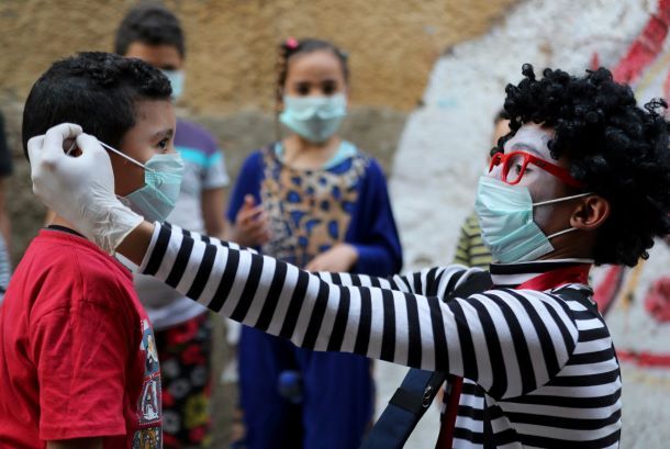 في ظل انتشار جائحة فيروس كورونا المستجد قام ممثل البانتومايم أحمد ناصر بإخفاء وجهه تحت طبقة من طلاء الألوان ونظارة ذات إطار باللون الأحمر الفاقع، في شارع حي القلعة بالعاصمة المصرية القاهرة بهدف توعية الأطفال بخطورة فيروس كورونا كما يوزع الكمامات ويوجه النصائح للأطفال العابرين أمامه.