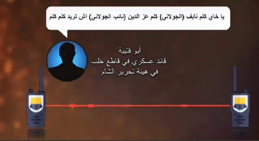 واشترك في المحادثة الصوتية القائد العام لقاطع حلب ابو ابراهيم سلامة الذي اكد معرفته بتلك السرقات لكنه لم يتمكن من ضبط تلك المجموعة، ليرد عليه الامني العام في القاطع ذاته ويدعى ابو سفيان الذي قال بانه طردهم ولاحقهم كثيرا.