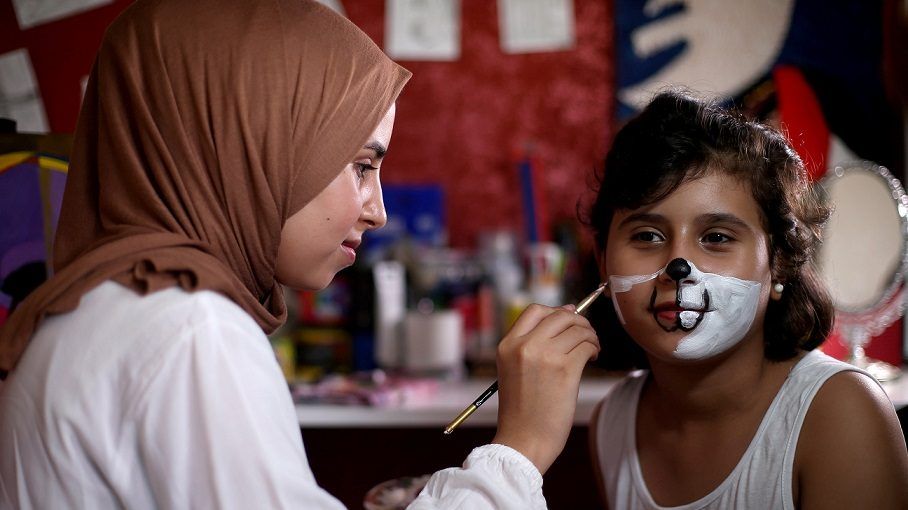 وترى رنين، وهي من دير البلح في قطاع غزة وتدرس الفن، أن هناك فرصة أمام فنها للإكمامات على وجوه الأطفال للتوعية من كورونا