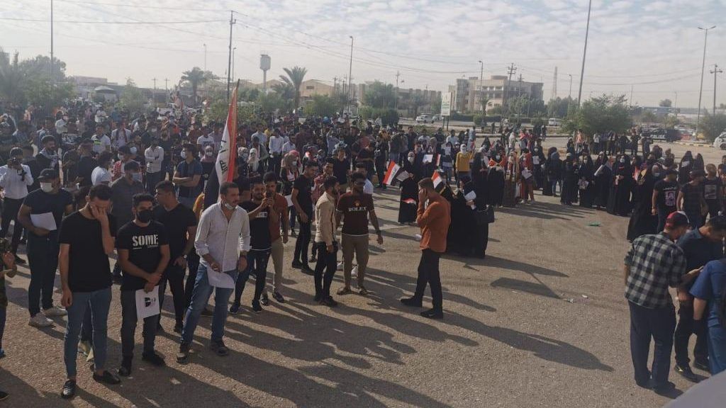 وأضاف، أن “المحتجين في بغداد توزعوا في مناطق عدة وهي: العلاوي – ساحة التحرير – الجادرية – شارع النضال”.