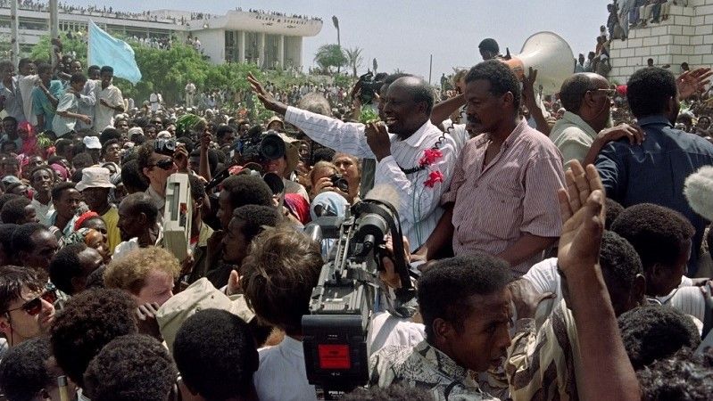 قافلة عسكرية بقيادة الولايات المتحدة تشق طريقها للخروج من مقديشو متوجهة إلى القاعدة الجوية السوفيتية السابقة بالي دوجل في 15 ديسمبر 1992 كجزء من عملية “استعادة الأمل” العسكرية/ أ ف ب