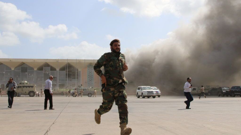 وضرب هجوم إرهابي مطار عدن، في 30 ديسمبر، لحظة وصول طائرة تقل الحكومة الجديدة إلى المطار، وفيما نجا جميع من كان على متن الطائرة، قتل 26 شخصاً وأصيب حوالي 110 آخرين، بينهم مسؤولون حكوميون وإعلاميون وعاملون في المطار ومسافرون كانوا بانتظار رحلتهم إلى القاهرة.