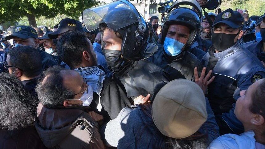 ذلك طالبوا السلطات بإطلاق سراح ناشط تظاهر يوم 14 كانون الثاني/يناير في الذكرى العاشرة لثورة 2011 بينما فرضت السلطات إغلاقا تاما في البلاد.