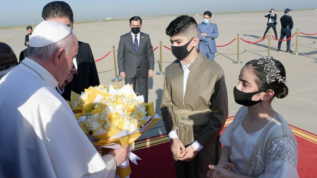وصل البابا فرنسيس إلى الموصل في شمال العراق التي كانت قبل سنوات قليلة مركز “خلافة” تنظيم داعش الإرهابي، وحيث سيترأس صلاةً عن أرواح ضحايا الحرب في باحة كنيسة مدمرة في وسط المدينة.
