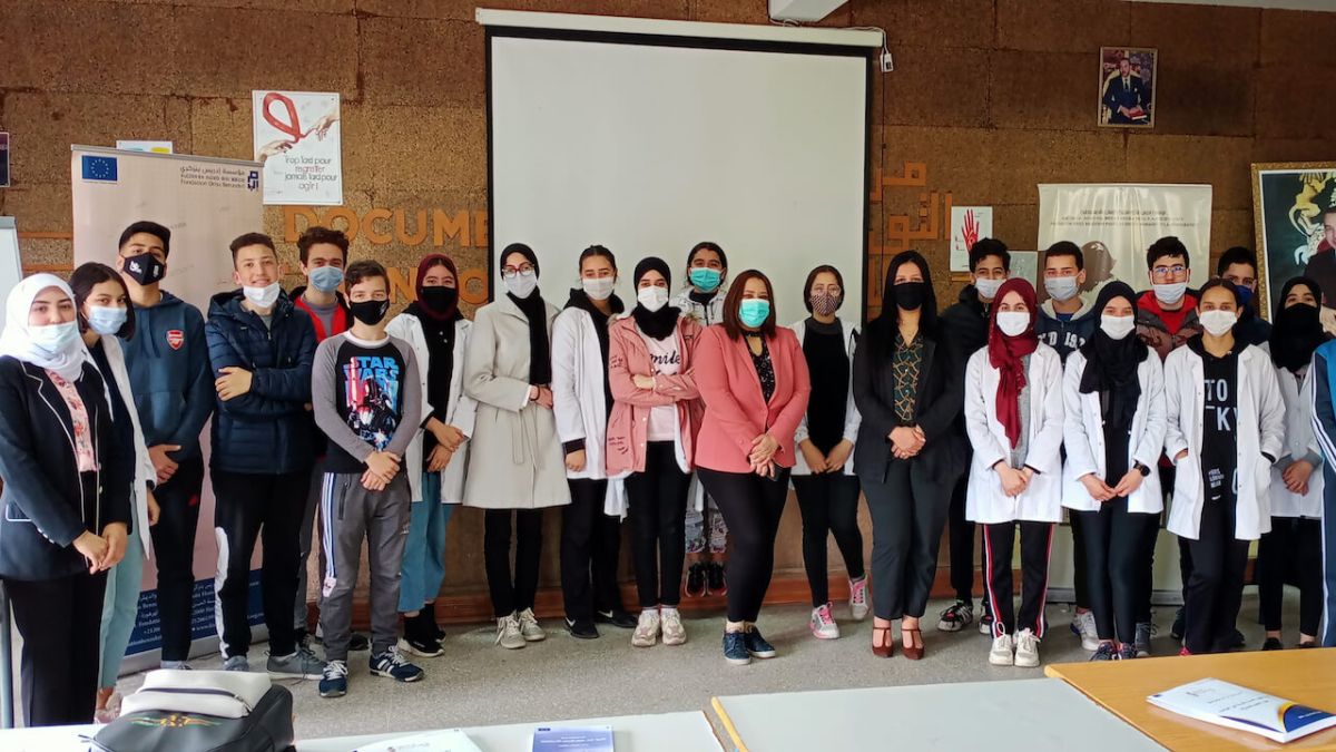 60 من الطلبة في ورشة المواطنة وحقوق الإنسان في طنجة بالمغرب