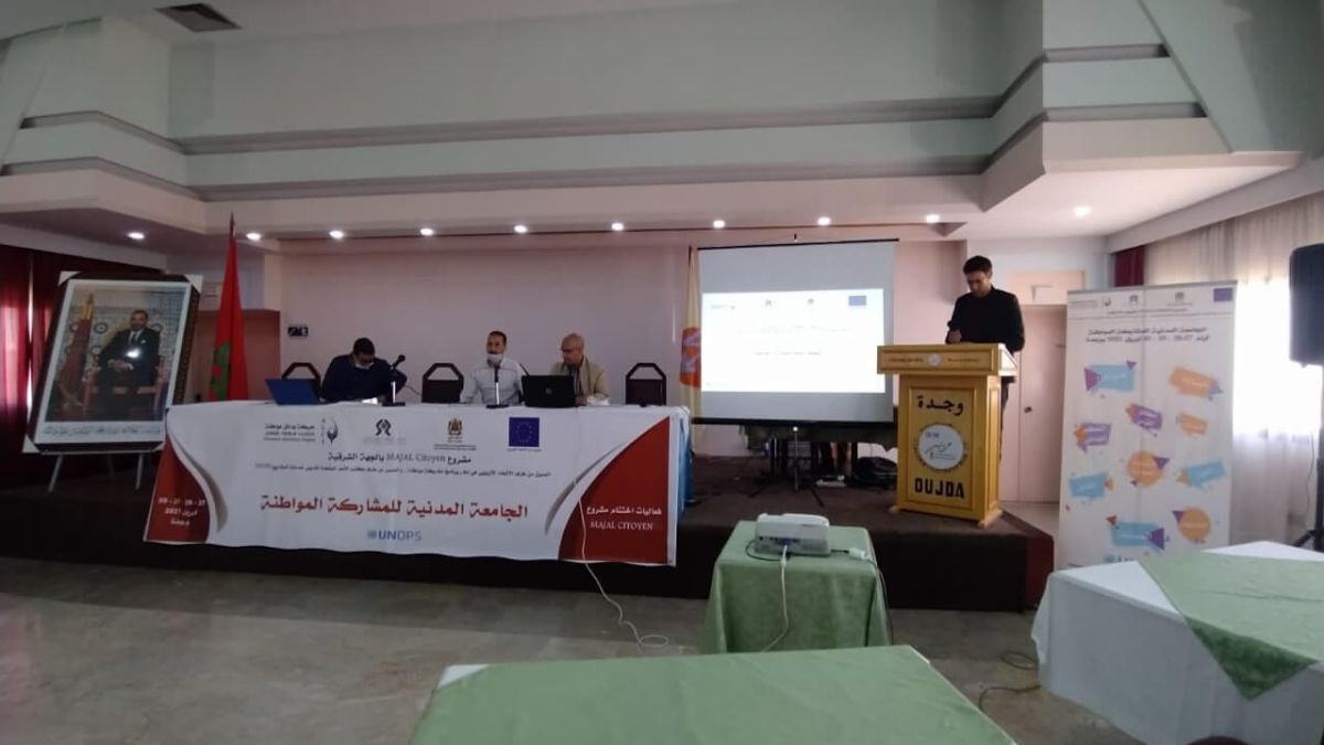 وتم في ختام الفعالية تثمين الخلاصات التي تمت بلورتها خلال مدة المشروع الذي يتم بتمويل من طرف الاتحاد الأوروبي, في إطار برنامج مشاركة مواطنة المسير من طرف مكتب الأمم المتحدة لتدبير خدمات المشاريع UNOPS.