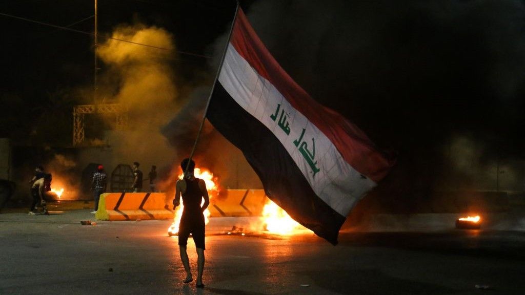 محتجون يشعلون النيران بالقرب من القنصلية الإيرانية في كربلاء