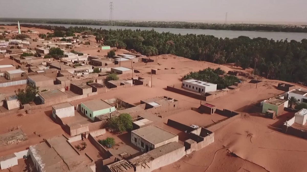 الرمال التي زحفت إلى القرية الواقعة على ضفاف نهر النيل، دفنت كل شيء في طريقها والتهمت الأراضي الزراعية.
