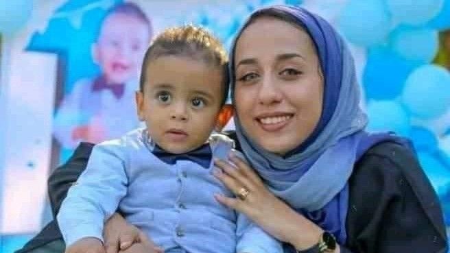 الصحافية رشا عبدالله وزوجها الصحافي محمود العتمي مع طفلهما. وسائل التواصل الاجتماعي