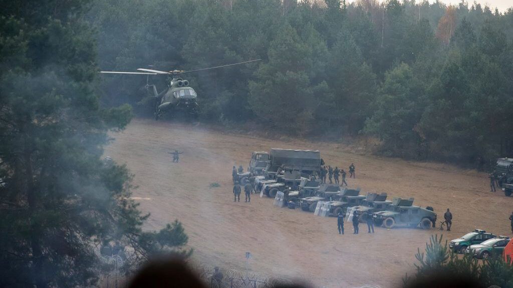 وقالت “على مرأى من الشرطة والجنود، فرّ الناس على الجانب البيلاروسي إلى الغابة”.