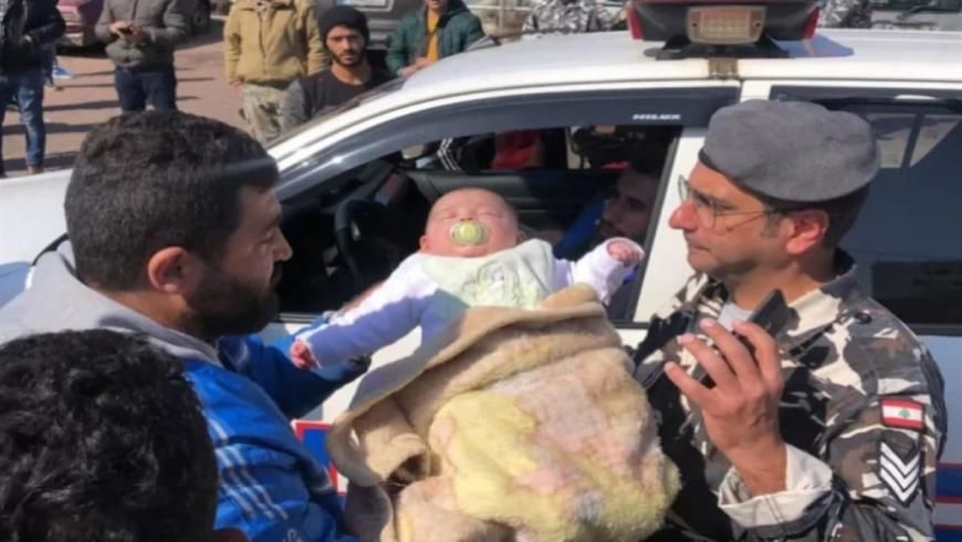 وأظهر مقطع انتشر على وسائل التواصل الاجتماعي، مواطناً لبنانياً وهو يحمل طفلته الرضيعة ويتوجه بها إلى أحد عناصر قوى الأمن الداخلي اللبناني محاولاً إعطاءه الصغيرة.