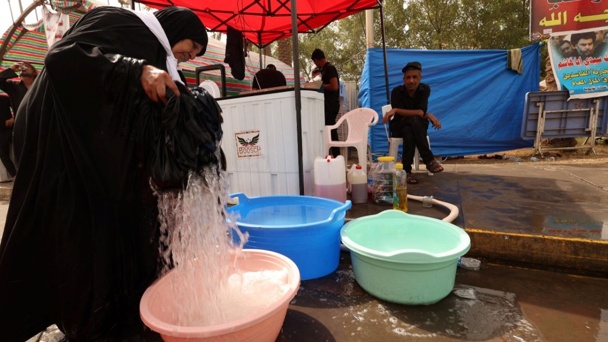 أم سلوان تغسل ملابس المعتصمين أمام البرلمان العراقي