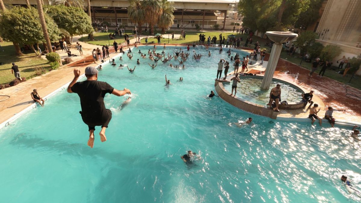 في إطار احتجاجات العراق.. المتظاهرون دخلوا حمام السباحة للقصر الجمهوري