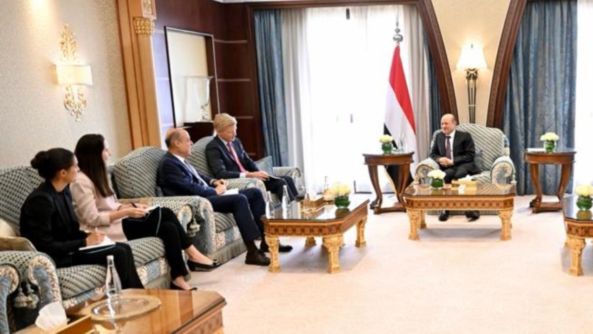 وكان الرئيس رشاد العليمي قد التقى في وقت سابق من الاثنين رئيس بعثة الاتحاد الأوروبي لدى اليمن غابرييل فيناليس، لمناقشة مستجدات الوضع على الساحة اليمنية، ومسار الهدنة الانسانية والضغوط الأوروبية والدولية المطلوبة لدفع الحوثيين على الوفاء بالتزاماتهم بموجب الاعلان الاممي، بما في ذلك فتح طرق تعز وباقي المحافظات، ودفع رواتب الموظفين من عوائد موانئ الحديدة.