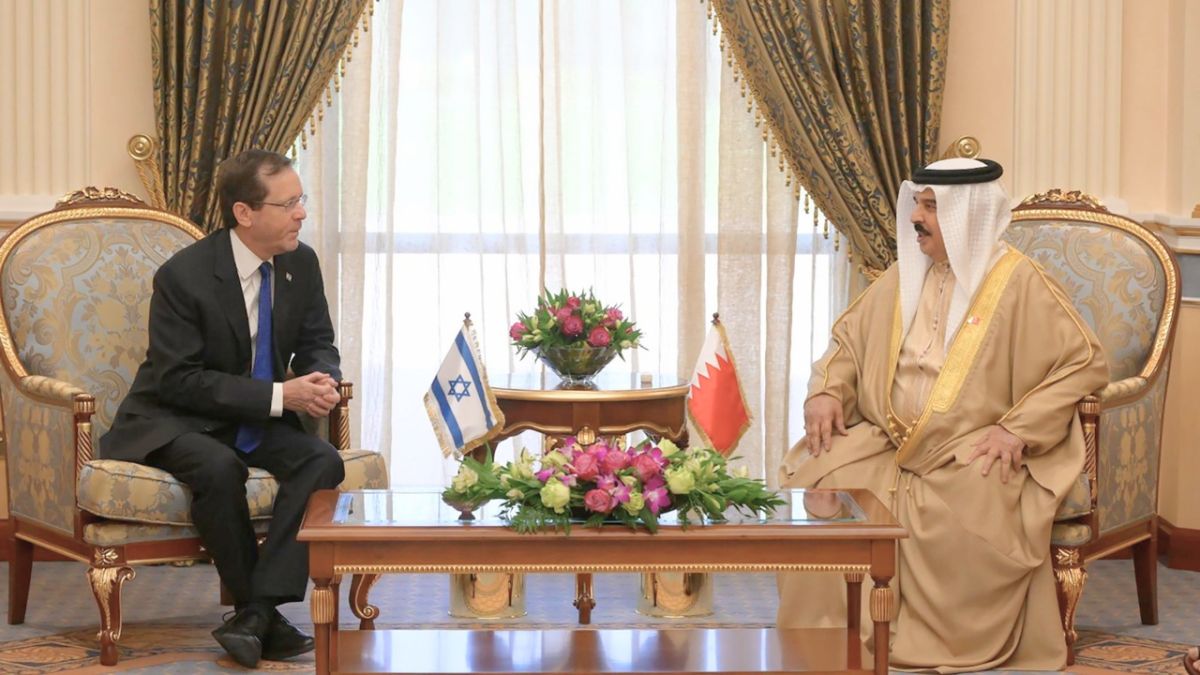 وقال بيان نشرته وكالة الأنباء البحرينية «بنا»: “وصل إلى البلاد اليوم فخامة الرئيس إسحق هرتسوغ، رئيس دولة إسرائيل، والوفد المرافق له، في زيارة رسمية لمملكة البحرين يلتقي خلالها بصاحب الجلالة الملك حمد بن عيسى آل خليفة، ملك البلاد، حيث يجري مباحثات مع جلالته تتناول تعزيز علاقات التعاون الثنائي، والقضايا الإقليمية والدولية ذات الاهتمام المشترك”.