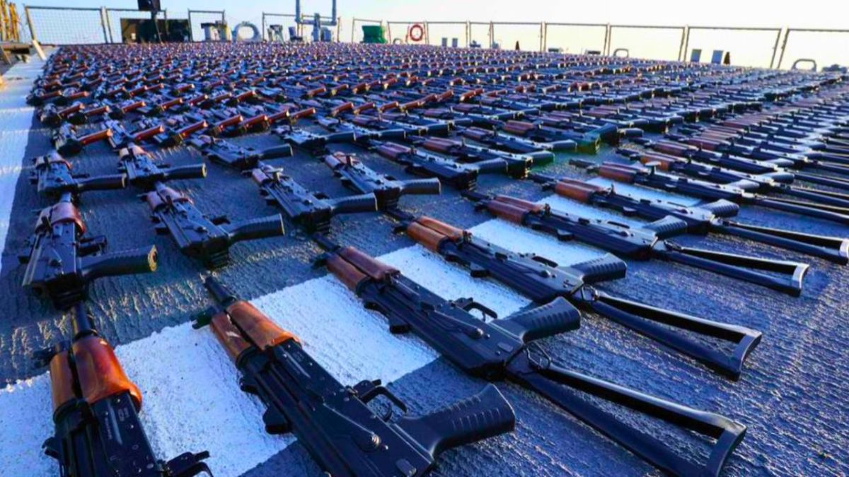 وأشارت إلى أن السفينة كانت تقوم بتهريب أكثر من ألفي قطعة سلاح آلي نوع (AK-47).