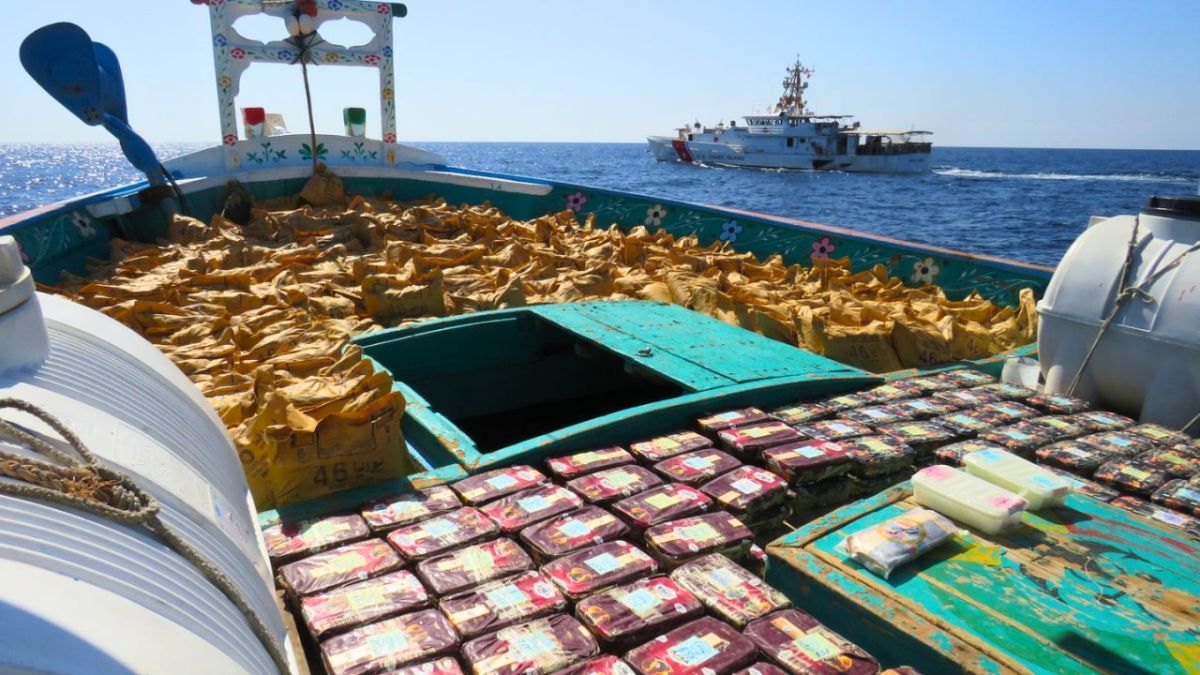 A @USCG vessel seized 4,000 kilograms of hashish and 512 kilograms of methamphetamine worth a total estimated U.S. street value of $33 million from a fishing vessel transiting international waters in the Gulf of Oman, Jan. 30.