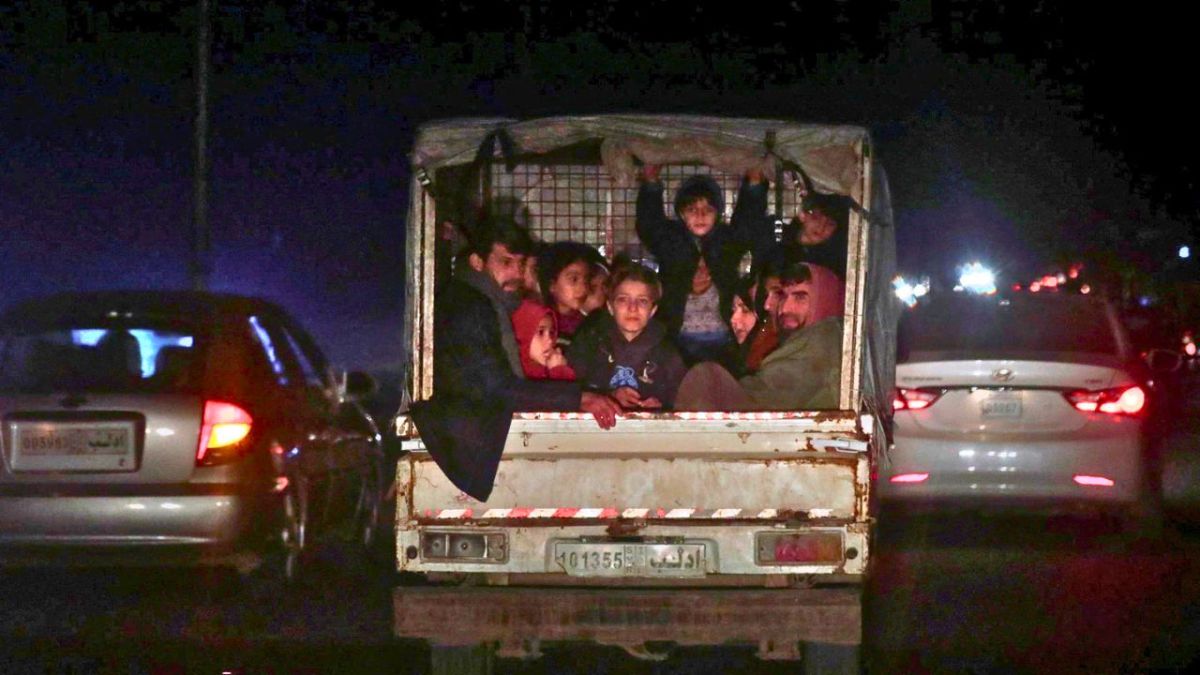 مواطنون يجلسون في الشارع بعد الزلزال المدمر في مدينة إدلب السورية. (رويترز)