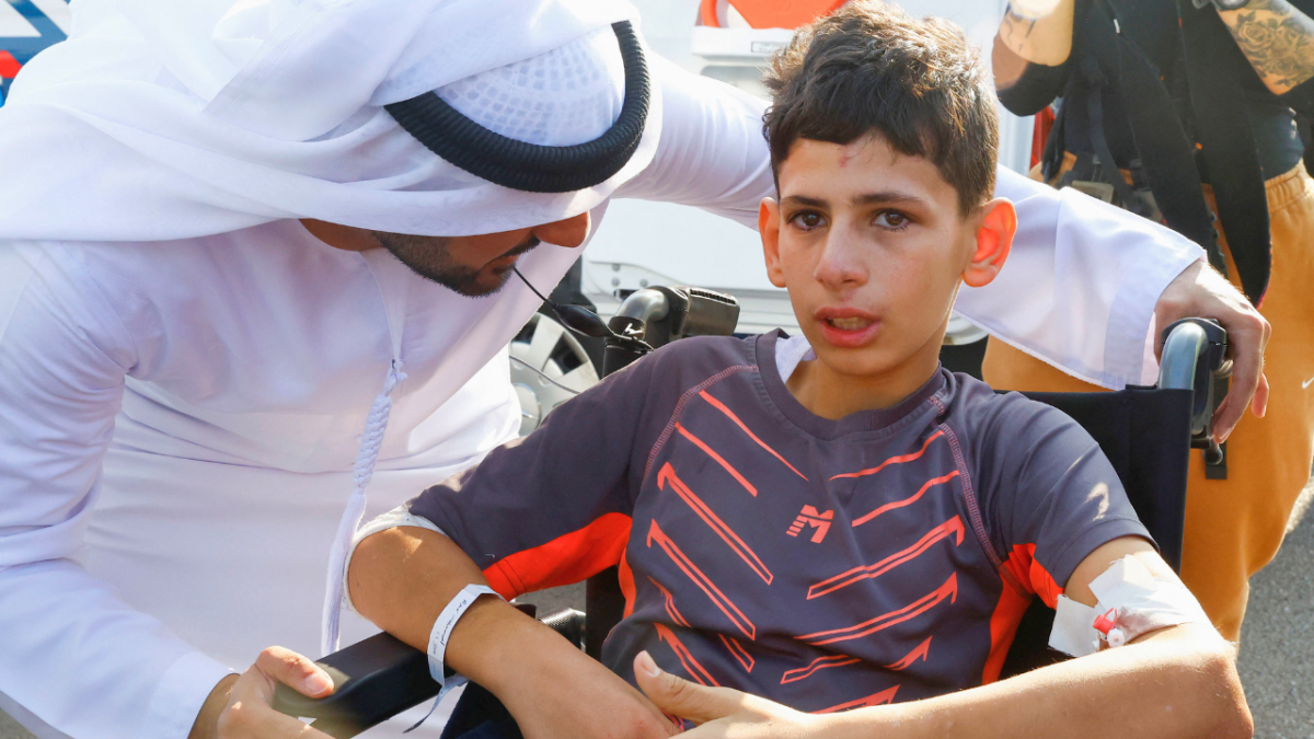 طفل مصاب يصل إلى الإمارات لتلقي العلاج (رويترز)
