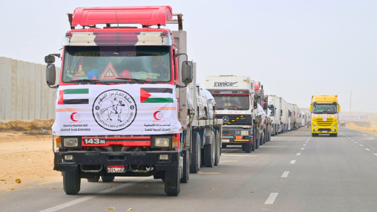تحركت اليوم قافلة مساعدات إنسانية إماراتية من مدينة العريش المصرية إلى معبر رفح تمهيداً لدخولها إلى قطاع غزة ليتم توزيعها تحت إشراف إماراتي ضمن عملية “الفارس الشهم 3” التي أمر بها رئيس دولة الإمارات الشيخ محمد بن زايد آل نهيان، لدعم الشعب الفلسطيني الشقيق في قطاع غزة.