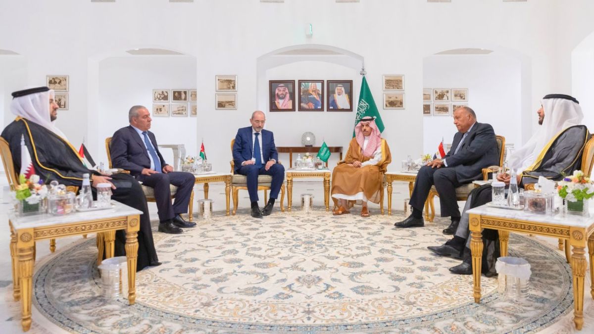 وضم الاجتماع وزراء خارجية السعودية الأمير فيصل بن فرحان آل سعود، ومصر سامح شكري والأردن أيمن الصفدي، والمستشار الدبلوماسي للرئيس الإماراتي أنور قرقاش، وأمين سر اللجنة التنفيذية لمنظمة التحرير الفلسطينية حسين الشيخ،، ووزير الدولة في وزارة الخارجية القطرية محمد الخليفي.