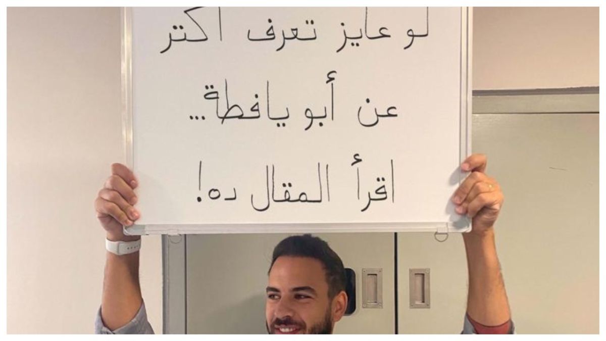 طوال عامين كاملين لم يعرف أحد هوية “أبو يافطة” لأنه يخفي وجهه، حتى فاجأ الجميع قبل بداية عام 2022 وبداية العام الثالث من تجربته بالكشف عن وجهه الحقيقي بدون نشر أي معلومات إضافية. شدني الغموض الذي فرضه حول نفسه وشدتني القصة وتملكتني رغبة في معرفة من يقف وراء تلك التجربة الملهمة لأكتشف أنه نجل صديقة عزيزة أعرفها منذ أكثر من 15 عاماً، وذلك بالصدفة البحتة عندما نشرت “يافطة” تحتفل بعيد ميلاده كتبت فيها “من أم أبو يافطة إلى ألذ أبو يافطة.. كل سنة وإنت طيب وعقبال مليون سنة”.