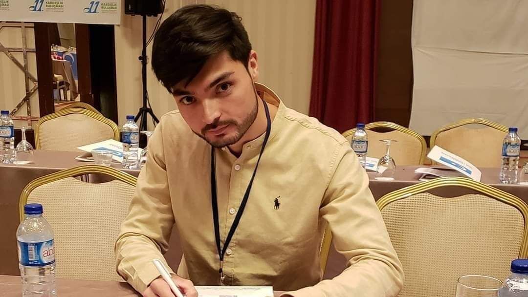 الشاب الأفغاني الإيغوري الناشط عبدالعزيز الناصري في إحدى التحركات المنددة باضطهاد الصين للإيغور