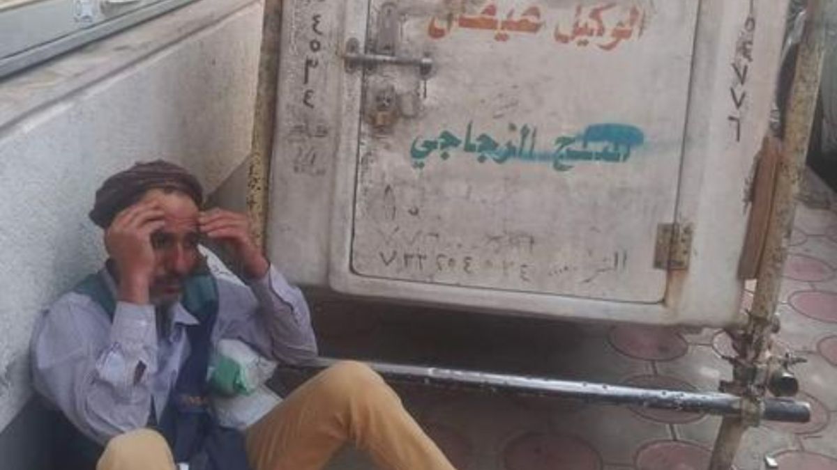 تداول ناشطون وصحافيون، صورة تظهر الصحفي (فيصل عبدالحميد السراجي) الذي اضطرته ظروف الحرب إلى الافتراش في أحد شوارع صنعاء، لبيع الثلج، والتي يتعرض فيها للاعتداءات والمضايقات المتكررة من موظفي البلدية الخاضعة لميليشيا الحوثي.
