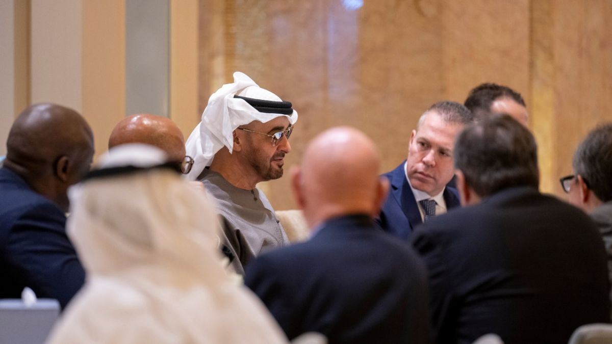 ورحب محمد بن زايد بالضيوف خلال اللقاء، مؤكدًا حرص دولة الإمارات على خلق شراكات مستدامة مع دول العالم، ترتكز على الثقة والاحترام المتبادل والمصالح المشتركة.