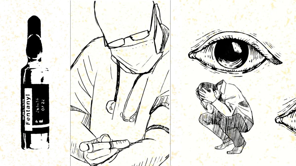 في البداية كان “أ.ش” يتناول أمبولا واحدا من الفنتانيل الصيني في اليوم ولم تمر إلا فترة قليلة طلب حتى طلب جسده المزيد والمزيد من الأمبولات، تحول الطبيب النابه إلى لص لأمبولات الفنتانيل الموجودة بيصيدليات المستشفيات التي يعمل بها، حتى بات الأمر ملحوظا فأينما وجد الطبيب الشاب اختفى الفنتانيل، صار مشكوكا به بدأ الجميع يتهامس ولاحقته نظرات الاتهام والريبة من طاقم الأطباء فتوقف عن اختلاسه من المستشفى ولكنه لم يستطع التوقف عن تعاطيه كمخدر.”