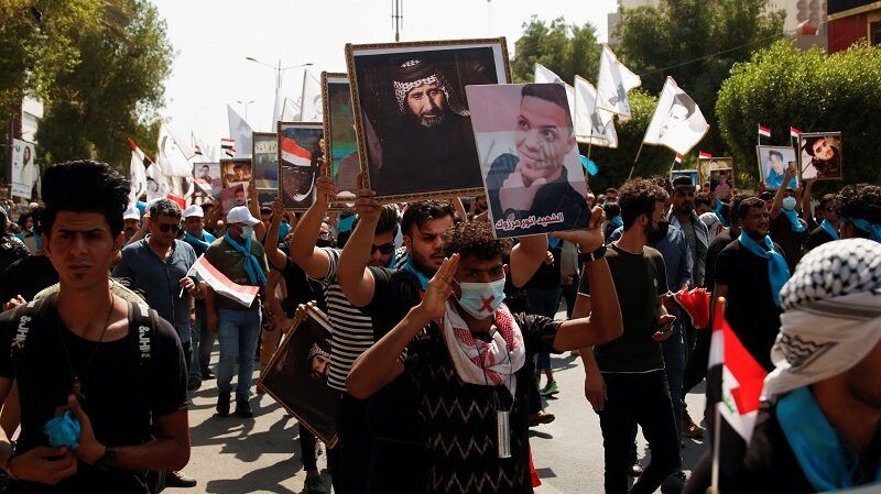 خرج المئات من العراقيين في العاصمة بغداد لإحياء الذكرى الثانية من احتجاجات تشرين التي انطلقت في الأول من أكتوبر 2019 والتي راح ضحيتها نحو 800 متظاهراً وآلاف الجرحى والمعتقلين، كما جددوا مطالبهم بمحاسبة قتلة المتظاهرين والفاسدين.